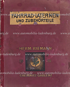 1910, Preisliste Fahrrad-Laternen und Zubehörteile, erste 32 Seiten mit teils starken Beschädigungen an Rändern, sonst guter Zustand