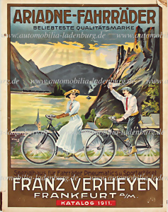 1911, Verkaufskatalog "Ariadne Fahrräder" Verheyen Frankfurt, inkl. Preisliste u. Bestellscheine, für Fahrräder, Pneumatics und Sportartikel, dem Alter ensprechend guter Zustand