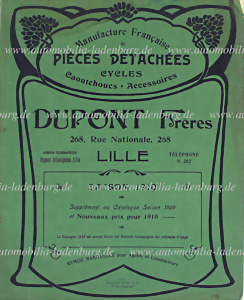 1910, Verkaufkatalog Dupont Freres für französische Fahrrad-Ersatzeile, Gummis und Zubehör, dem Alter ensprechend guter Zustand