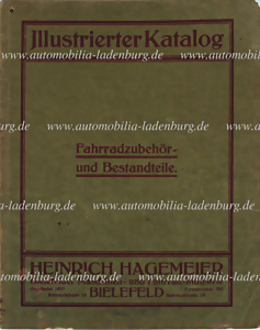 Um 1910, Heinrich Hagemeier Bielefeld, Illustrierter Katalog für Fahrradzubehör und Bestandteile, oben Links geknickt, gerissenes Inhaltsverzeichnis.