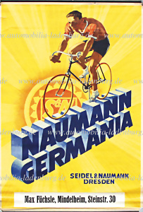 Um 1930, Seidel & Naumann Dresden ,Werbeplakat für Fahrradmodell Germania, unten nachträglich beklebt, mit Gebrauchsspuren und 20 cm. Einriss an Befestigung