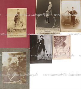 Um 1900, Konvolut 6 tlg. original Kabinettaufnahmen, darunter Aufnahme von Hochradfahrer Max Lehmann im Passepartout, datiert auf 1885, Rückseite gestempelt "Sammlung Lachmund", Aufnahme eines Kunstfahrers, auf Karton, sowie Cabinet Portrait J.H. Kramer Ultrecht, etc. Weitere Details entnehmen Sie bitte unserem Katalogbild, versch. Formate, tw. mit deutlichen Gebrauchsspuren.