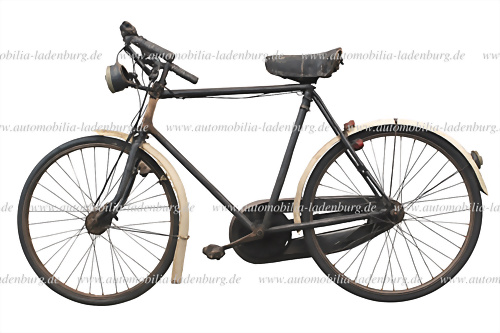 Um 1930, Herrenfahrrad mit stabilem Stahlrohrrahmen, Dreigang-Schaltung Sturmey Archer England, originalem Steuerkopfschild mit dem klassischen BSA-Emblem, Trommelbremsen vorne und hinten, Kettenkasten, Lederfedersattel, Frontlampe, Weißblech-Schutzbleche – BSA (Birmingham Small Arms Company) war... mehr