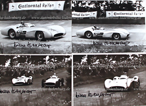 Grand Prix Deutschland Nürburgring 1954, 4 handsignierte original s/w Aufnahmen, Hans Herrmann auf Mercedes Benz W196 Stromlinie,13x18cm