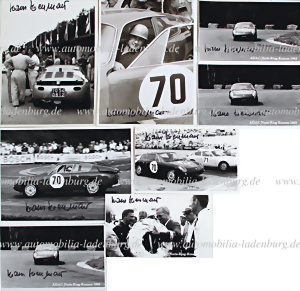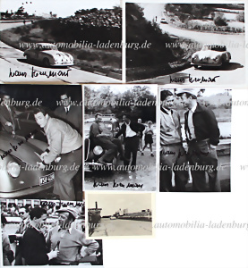 ADAC Noris Ring Rennen 1963, Konvolut 8 handsignierte original s/w Aufnahmen, Hans Herrmann Klassensieger auf Abarth Simca 1300, verschiedene Formate