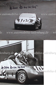 1000km Nürburgring 1962, Hans Herrmann und Graham Hill auf Porsche 718 WRS (#718-047), handsigniert, 13x18cm