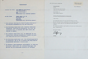 25.8.1975, Vertrag zwischen Dr. Wolfgang Porsche (Jamoto GmbH) und Hans Herrmann (Herrmann Auto Technik), handsigniertes Anschreiben von Dr. Wolfgang Porsche sowie zwei Seiten Vertrag handsigniert von Herrmann und Dr. Porsche