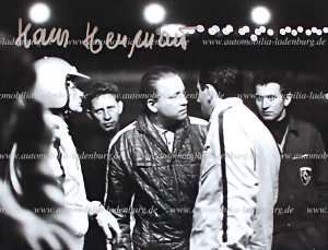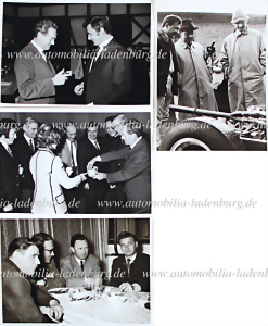 Konvolut 4 original s/w Aufnahmen, Hans Herrmann mit Ferry Porsche, darunter Fotos mit von Frankenberg, Linge, Ferdinand Piech, Huschke von Hanstein...13x18cm