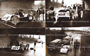 Konvolut 9 original s/w Aufnahmen, Hans Herrmann bei Versuchsfahrten auf Porsche 910, dazu Werksfotos Porsche 917, 908...verschiedene Formate
