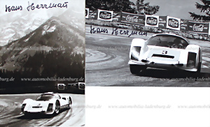 Roßfeld 1966, zwei handsignierte original s/w Aufnahmen, Herrmann auf Porsche 906 (3.Platz Gesamtklassement), 13x18cm