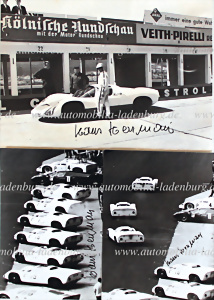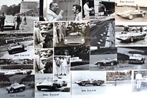 Rennjahr 1965, Konvolut 21 handsignierte original s/w Aufnahmen, Hans Herrmann auf Abarth 1300 OT, 2000 OT, 1600 SP...Rossfeld, 500km Nürburgring, 1000km Nürburgring, Cesana – Sestriere, Preis von Tirol, Aspern, verschiedene Formate