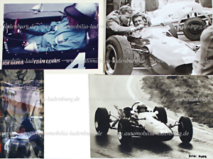 Solitude Rennen 1965, Konvolut 5tlg, darunter zwei Farbdiapositive (6x6cm) dazu 3 original farb- und s/w Aufnahmen, Hans Herrmann auf Lotus BRM F2 (7. Platz), verschiedene Formate