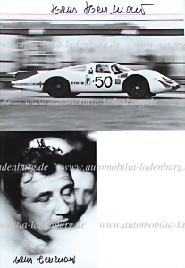24 Stunden Daytona 1969, Konvolut zwei handsignierte original s/w Aufnahmen, Hans Herrmann / Jo Siffert auf Porsche 908L, 18x24cm und 13x18cm