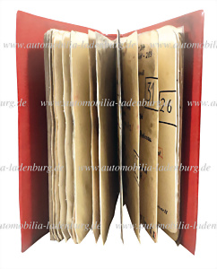 Mille Miglia 1955, Gebetsbuch von Hans Herrmann und Hermann Eger, die beiden Werksfahrer starteten auf dem berühmten Mercedes Benz 300 SLR (#0006/55), Herrmann / Eger waren bis zum Ausfall am Futa Pass dem späteren Siegerteam Moss / Jenkinson dicht auf den Fersen...ein abgefallener Tankdeckel und das dadurch überschwappende Benzin zwangen das Duo aber das Rennen aufzugeben, 38 Seiten, Museumsqualität