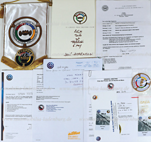 Konvolut mehr als 20tlg. „Club International des Anciens Pilotes de Grand Prix F1“, darunter Tischwimpel, Plakette, Aufnäher...
