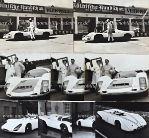 Rennjahr 1968/1969, Album mit original s/w Aufnahmen und Zeitungsberichten, insgesamt 9 s/w Fotos, eine Armbinde „1968 - 1000km SPA Pilote“, Sterbekarte Gerhard Mitter...etc., sehr umfangreich