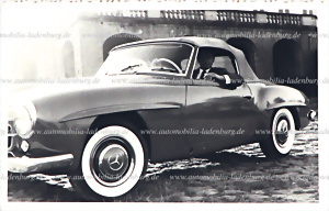 Dezember 1956, original s/w Aufnahme, Hans Herrmann in seinem Mercedes Benz 190 SL vor dem Schloß Solitude, 8,5x14cm