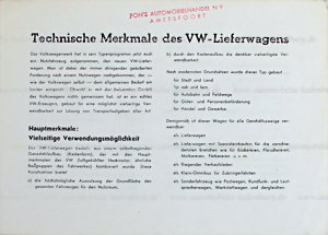 1948, Faltprospekt „Technische Merkmale des VW Lieferwagens“, 4 Seiten deutscher Text, selten