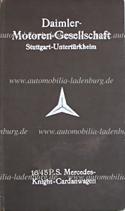 1913, Betriebsanleitung Daimler Motoren Gesellschaft 16/45PS, Mercedes-Knight-Cardanwagen, 136 Seiten, deutscher Text, guter Zustand