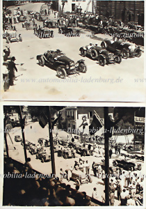 1930, Konvolut 2 original s/w Aufnahmen Circuito di Avellino 1930, Startaufstellung u.a. mit Fagioli auf Maserati 26M Sport; Arcangeli auf Alfa Romeo; Caflisch auf Itala, Achimede Rosa auf OM, Morandi auf OM..., je 18x24cm, gestempelt Eugenio Blandi / F. Troncone