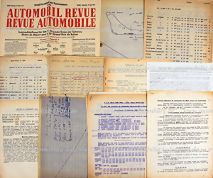 Konvolut 13 Seiten aus dem Nachlass von Giovanni Battista Guidotti, betreffend Grand Prix Rennen, u.a. Streckeneigenschaften / Fahranweisungen wie Circuito di SPA, Gran Premio di Ginerva, Gran Premio di Europa, Circuito di Bari, Montecarlo mit Fahrzeugeinstellungen des Alfa Romeo 158, teilweise mit handschriftlichen Ergänzungen und Notizen; handschriftliche Eintragung der Rundenzeiten Grand Prix Bern 09.06.1947; Auflistung der Rundenzeiten Gran Premio della Penya Rhin Barcelona 1950, u.a. Ascaria auf Ferrari 375, Taruffi auf Ferrari 375, Parnell auf BRM..., inkl. Bericht und Fahrverhalten der Fahrzeuge; Trainingsresultate Grand Prix Bern 1950; Bericht Messungen und Fahrverhalten Grand Prix Monaco1965; Auflistung der teilgenommenen / präsentierten Fahrzeugen des „Test Day“ auf der Rennstrecke in Silverstone 1963; Technischer Bericht zum GP Montecarlo 1963..