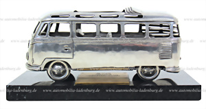 Persönliches Geschenk zum 70. Geburtstag von Hans Herrmann, Zinnmodell VW Bus auf Marmorsockel, mit aufgebrachter Plakette „35 Jahre VW-Bus limitierte Jubiläumsauflage handgearbeitet für Hans Herrmann zum 70. Geburtstag 23.Februar.1998“, limitierte Auflage 149/200