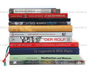 Bücherkonvolut darunter „Maultaschen und Motoren“ von Claus-Peter Hutter; „Der Bergkönig – Sepp Greger“ von Maria Weiniger; „Das Solitude Jubiläum – Mythen und Legenden“ von Tobias Aichele; „An der Rennstrecke – Erinnerungen an Paul Fürst Metternich“ von Tatiana Metternich; „Rennfahrer für alle Fälle – Der Rolf“ von Behrendt / Kahnt / Kräling; „Mythos Rossfeld Rennen“ von Siegfried C. Strasser; „Mille Miglia“ von Paolo Mazzetti; „Le Leggendairie Mille Miglia“ von Alberto Redaelli, etc. weitere Buchtitel entnehmen Sie unserem Katalogbild