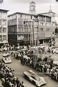 Großformatige s/w Aufnahme (Abzug neueren Datums), Empfang der siegreichen Porsche nach dem Sieg beim 24 Stunden Rennen von Le Mans 1970, 60x40cm
