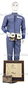 Sparco Rennanzug / Promotionanzug von Hans Herrmann, mit Schriftzug „Mercedes-Benz Classic Team“, getragen Ende 90er Jahre / Anfang 2000er (FIA Norme 1986 / 1986 Standard 05.238.CSAI.98), dazu Sturzhelm mit Schriftzug „Mercedes-Benz Classic Team“