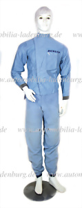 Original Rennanzug von Porsche-Werksfahrer Hans Herrmann, getragen u.a. bei verschiedenen Rennveranstaltungen in den 50 und 60er Jahren. Klassische blaue Fahrerjacke mit Hose, Dunlop Schriftzug. Authentisches Sammlerstück mit deutlicher Patina und hoher historischer Bedeutung. Details: Original getragen bei verschiedenen Rennen in den 50 und 60er Jahren. Hersteller: [Les Leston]. Zustand: Gut erhalten mit authentischen Gebrauchsspuren der Rennen