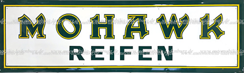 1960er Jahre "Mohawk Reifen" Blechschild "A-300 Made in U.S.A", 44x151cm, je vier Löcher zur Befestigung oben wie unten, sonst guter Zustand
