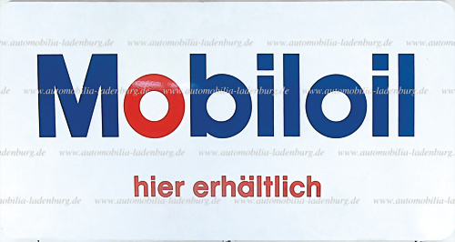 Original Tankstellen-Emailleschild "Mobiloil hier erhältlich", 75x151cm, Halter zur Befestigung oben und unten, leichte Lackschäden am Kante, sonst guter Zustand