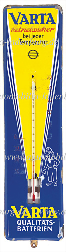 1950er Jahre Varta Qualitätsbatterien Emaille-Thermometer, 53x13cm, guter Zustand