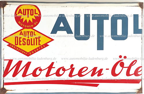 1950er Jahre Autol Motorenöl und Auto Desolite Werbeschild, 54x84x6cm, guter Zustand