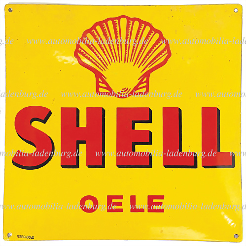1930er Jahre Emailleschild "Shell Oele", 46x46cm, sehr guter Zustand