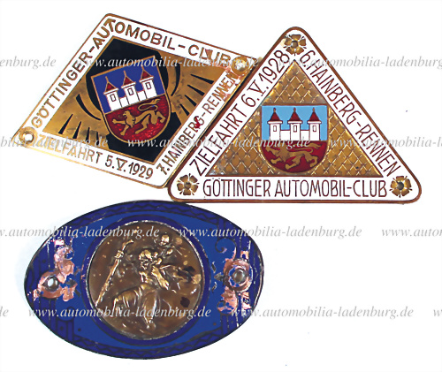 Konvolut 3 tlg. Plaketten, darunter 6. & 7. Hainberg-Rennen 1928/1929, sowie Beschädigte Christophorus Plakette,