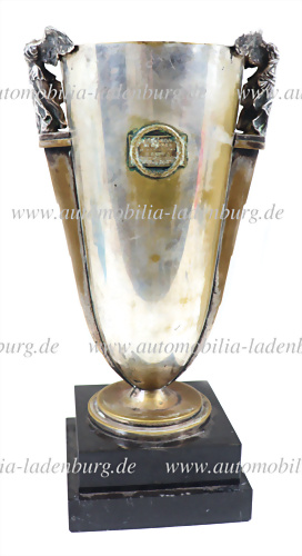 19. April 1925, Siegerpokal "1. Coppa Fiera di Milano" Autodromo di Monza. Siegerpokal für den ersten Platz - Alfieri Maserati auf Diatto 30 Sport, Höhe 40cm, auf schwarzen Mamorsockel 16x16cm, Alfieri Maserati war bis 1925 Chefmechaniker und Rennfahrer für Diatto. Als Diatto im Frühherbst 1925 sein... mehr