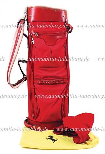 1990er Jahre, Schedoni Golftasche mit Haube und Staubbeutel, rot, 83x33x14cm, mit deutlichen Gebrauchsspuren