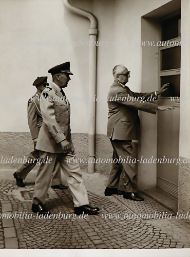 Original s/w Aufnahme Enzo Ferrari in Begleitung des italienischen Militärs, 18x13cm