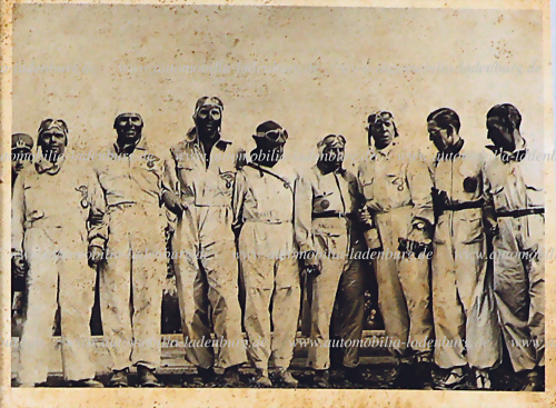 1940, original s/w Aufnahme der BMW Werksfahrer bei der Mille Miglia 1940, u.a. Richter, Wencher, Scholz, Briem, Brudes, Roese, Hanstein und Bäumer, 10x13cm