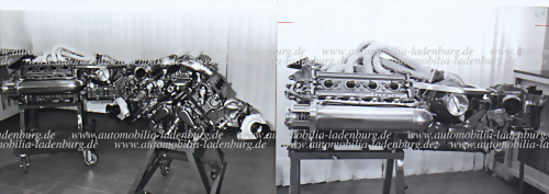 Konvolut 2 original s/w Aufnahme Ferrari Indy Antriebsaggregat Tipo 034, 1986, je 13x17,5cm