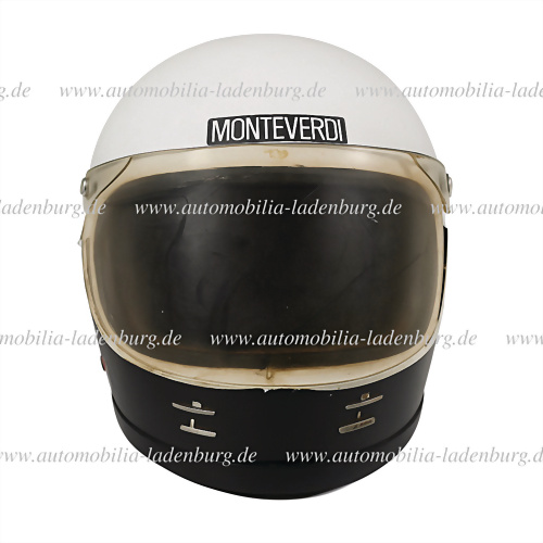 Original Sturzhelm von Peter Monteverdi, u.a. getragen bei Testfahrten mit Onyx ORE-1B, auf der Rennstrecke Paul Ricard Circuit 1990