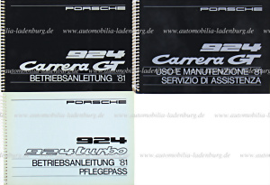 Konvolut 3 Betriebsanleitungen, darunter Porsche Carrera GT ´81, 500 2/81, Modell 1981, 924 turbo ´81, 3.5 M 6/80, Modell 1981, beide deutscher Text, dazu italienische Ausgabe "Porsche 924 Carrera GT ´81 Uso e Manutenzione ´81", Modello 1981, 50 6/80, guter Zustand