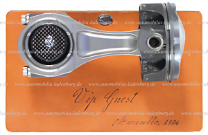 Schedoni Lederdisplay mit Pleuel und Kolben "Vip Guest Maranello 1996", 14x23x12cm