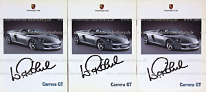 09/00, Konvolut 3 von Walter Röhrl handsignierte Verkaufskataloge, Porsche Carrera GT, deutscher Text, guter Zustand
