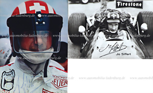 Konvolut 2tlg., darunter handsignierte Firestone Autogrammkarte Jo Siffert, Rückseite signiert von Jo Siffert, 10,5x15cm,dazu handsignierter Zeitungsausschnitt signiert von Siffert, 16,5x12cm
