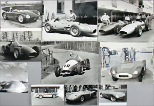mixed lot with 10 racing photos, No. 1: Perdisa, Monza 1956 in a Maserati 250 F, No. 2: Taruffi in a Maserati 2 litre four-cylinder, No. 3: Perdisa, Modena, September April 1955 test drives in a 1.5 litre Maserati, No. 4: photo Maserati 300 S, 1st version 1955, in the Maserati municipal works yard, No. 5: photo Maserati 150 S, 1000 km Buenos Aires 1956, No. 6: Maserati F1 1956, last version, test drives, vehicle without paint, No. 7: Cabianca in a Maserati 2 litre, test drives Modena, No. 8: Erwin Sommerhalder in a Maserati 25 F Mitholz-Kandersteg 1958, No. 9: Villoresi, Monza 1956, test drives Maserati 250 F, No. 10: photo Maserati 250 S in the municipal works yard of Maserati 1956, different formats, partially large format, partially stamped "Millanta"
