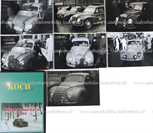 Mixed lot of 7 original b/w photographs, Rally Monte Carlo 1954 Brussels, 1950s, photographer "André Van Bever", 15.5x11.5cm