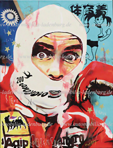 Acrylic painting "POWERAGE" by Francois Coorens from the series "VELOCITY", the motif shows Jacky Ickx, 60x80cm