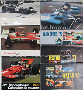 Collection of 7 motorsport calendars 1966, 1970, 2x 1971, 2x 1972, and 1973 with photos by the photographers Julius Weitmann, Fred Mayer, Rainer W. Schlegelmilch, H. Baumann, Carl Imber, various formats